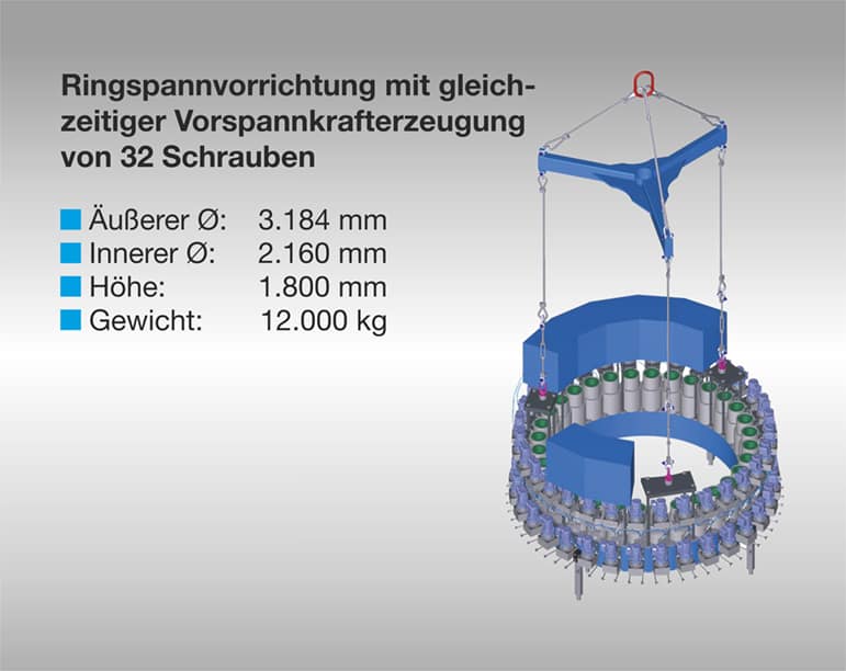 Tendeur à plusieurs tiges MST avec 32 boulons de plus de Ø 100 mm.